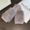 Leopard Print Plush Half-Finger Suede Gloves - Warm, Cute Winter Style for Students