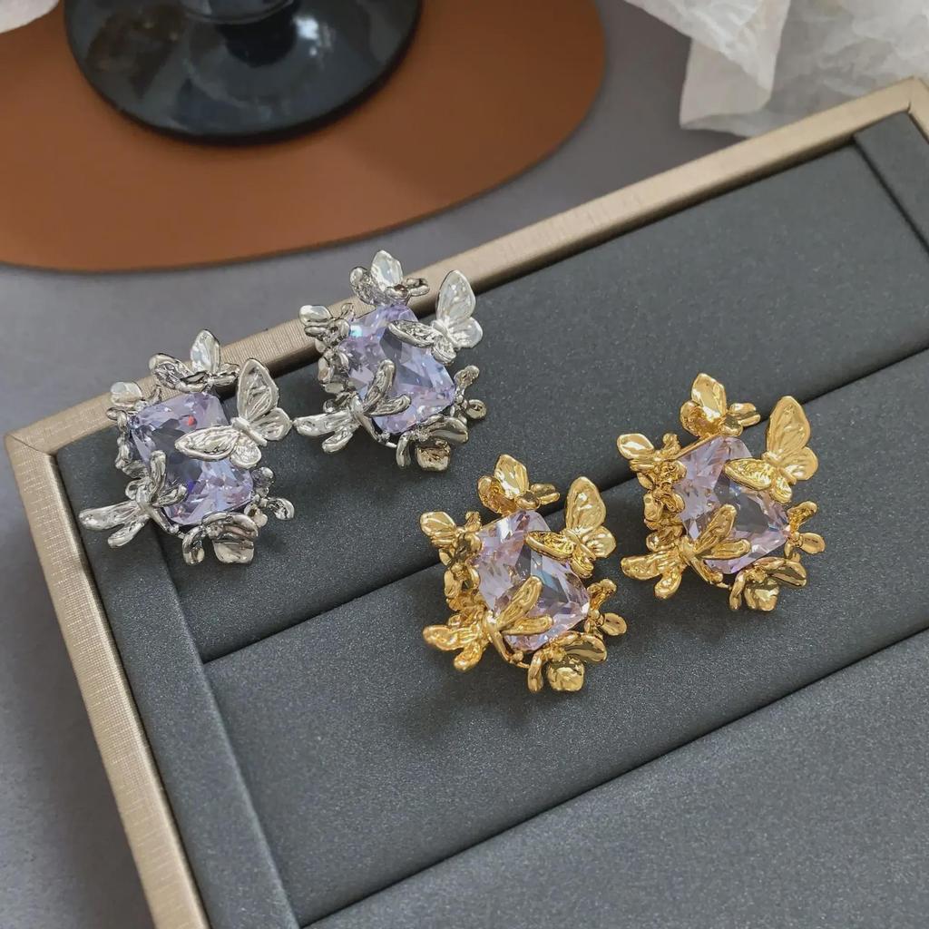 Elegant 2024 South Korea Dongdaemun Copper-Plated Gold Earrings with Zircon Inlay for Women