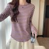 Retro Striped Base Shirt for Women In Autumn and Winter Design Ripped Long Sleeve Irregular T-shirt Slim and Slim Niche Top