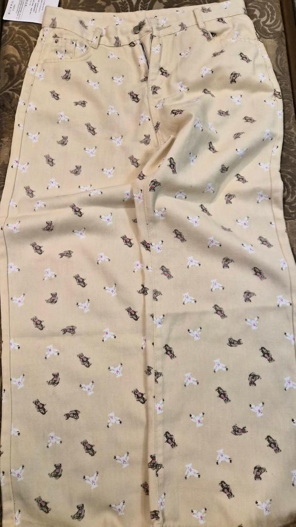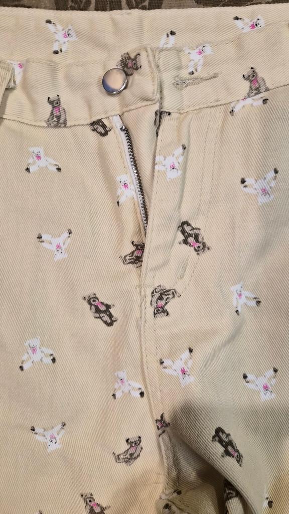 Korean Style Bear Print White Straight Jeans for Women Spring Autumn New Design High Waist Wide Leg Pants