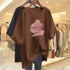 Apricot Short-sleeved T-shirt for Women In Women's Long Spring and Summer New Large Version Loose and Unique Small Cotton Top