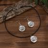 Classic Sun Pendant Necklace Set with Imitation Pearls and Waxed Leather Cord