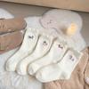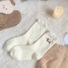 Women's Warm Thermal Mid-Tube Socks - White Lace Cartoon Sausage Dog Design for Autumn/Winter