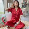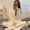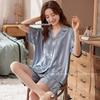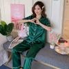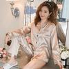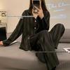 Women’s 2024 Spring/Summer Ice Silk Plaid Pajamas - Long-Sleeved Two-Piece Set