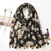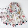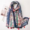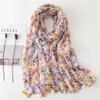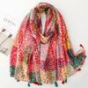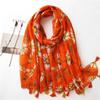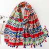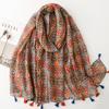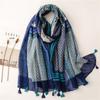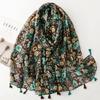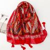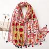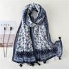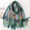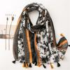Japanese-Style Cotton & Linen Bohemian Scarf - Cashew Print and Silk Blend, Retro Artistic Design, Sunscreen Towel