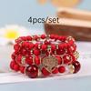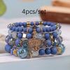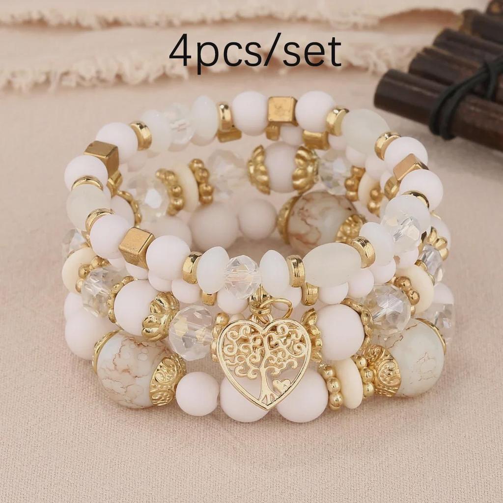 Bohemian Multi-Layer Tassel Bracelet Set with Hollow Heart Pendants and Glass Beads.