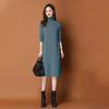 2025 Women's Winter Turtleneck Sweater Dress - Mid-Length Pullover with Over-Knee Skirt and Cashmere Coat