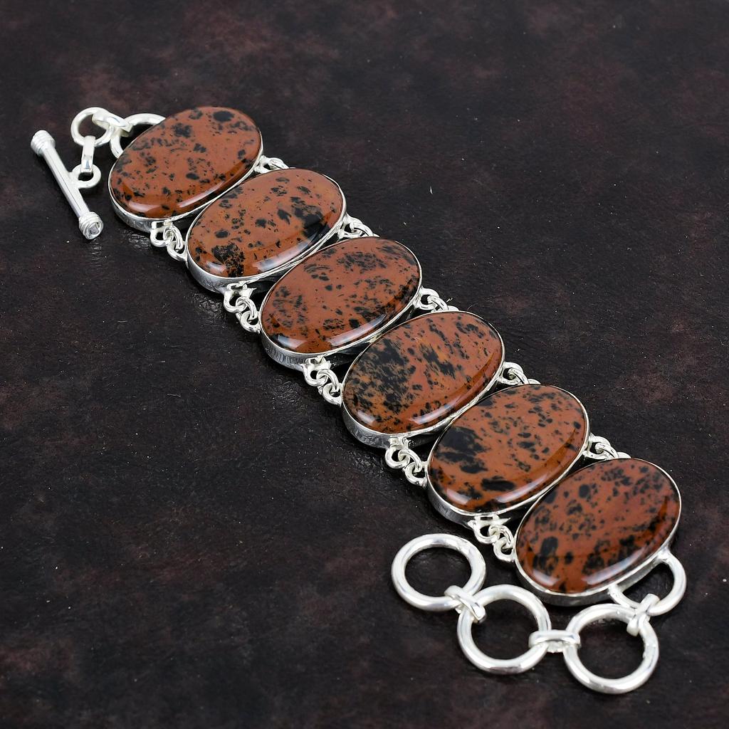 Mahogany Obsidian Bracelet Gemstone Jewelry Handmade Bracelet 925 Sterling Silver Adjustable Chain Bracelet Birthstone Jewelry Gifts for Her