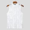 INCERUN Summer Men Sleeveless Lace See Through Mesh Sheer Party Tank Tops