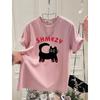 Cartoon Cat Top New Summer Korean Version Love Letters Large Version Loose Gray Short-sleeved T-shirt for Women