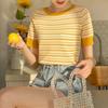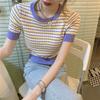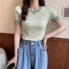 Short-sleeved Knit Sweater Female Summer Striped Knit Round Neck Thin T-shirt Short Paragraph Foreign-style Top Tide Casual Slim Fit Pullovers Tees