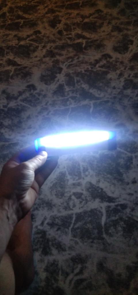 The lamp works. It was well packaged. The first time you press it - it shines brightly, the second - less light, the third - blinks, the fourth - turns off. It magnets well, and also has a hook to hang it. Although it is small itself, 17cm, there is enough light in the dark. Thank you!