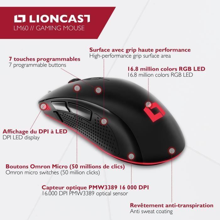Gaming Mouse - Lioncast - Lm60 Pro - Rgb - 16000 Dpi - High-performance Grip