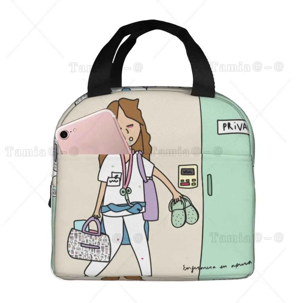 Cartoon Ladies Nurse Printed Lunch Bag for Women No Paro De Doblar Enfermera En Apuros Insulated Cooler Oxford Food Tote Bags
