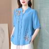Fashion Plus Embroidered Short Sleeved Tencel Shirt for Women's Summer New Loose Cotton and Linen Top