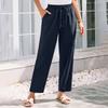 Women's New Solid Color Lace Up Loose Pocket Casual Pants