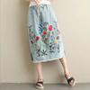 Spring Small Fresh Loose Large Size Ethnic Style Denim Heavy Industry Embroidered Elastic Waist Big Pocket Split Skirt