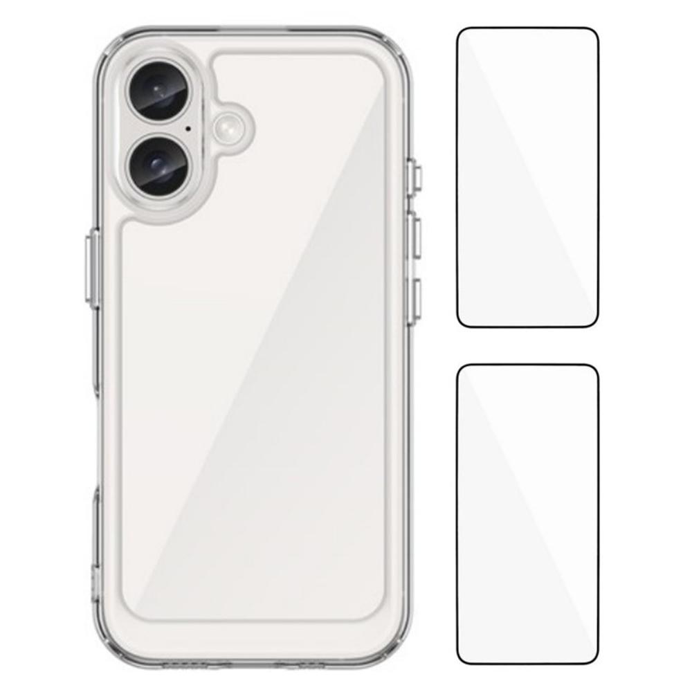 WANLONFENG MF2 Series For iPhone 16 Case TPU Acrylic Clear Phone Cover with 2Pcs Tempered Glass Film