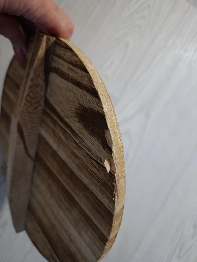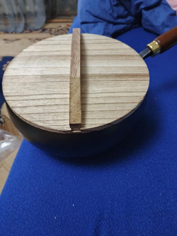 Although it was well packaged, the wooden lid is chipped. I didn't glue the chip back on, the chip is on the front side and does not affect the fit of the lid.