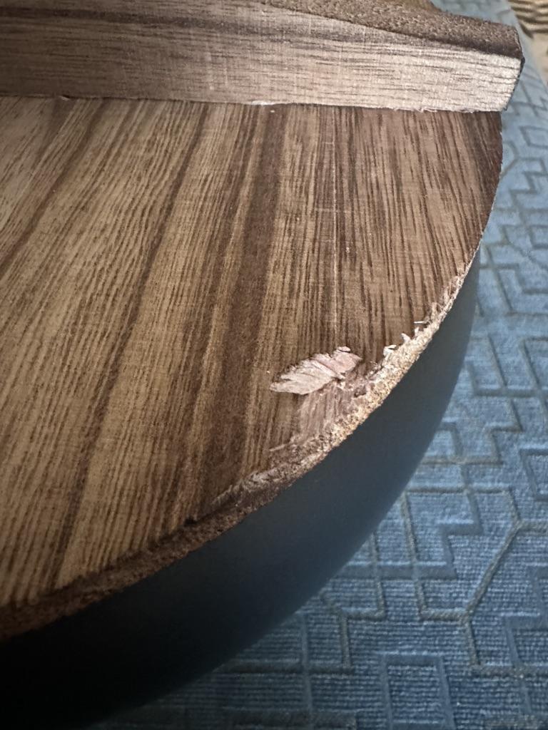 The frying pan is good, but the lid is all scratched, all the edges are delaminated, splinters stick out.