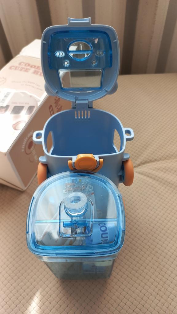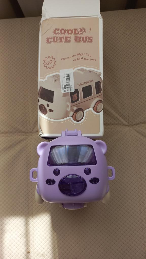 The unique appearance of this water bottle sets it apart from traditional designs. Featuring playful cartoon images, such as a bus-shaped cup, it's sure to capture children's attention and make drinking water more enjoyable.