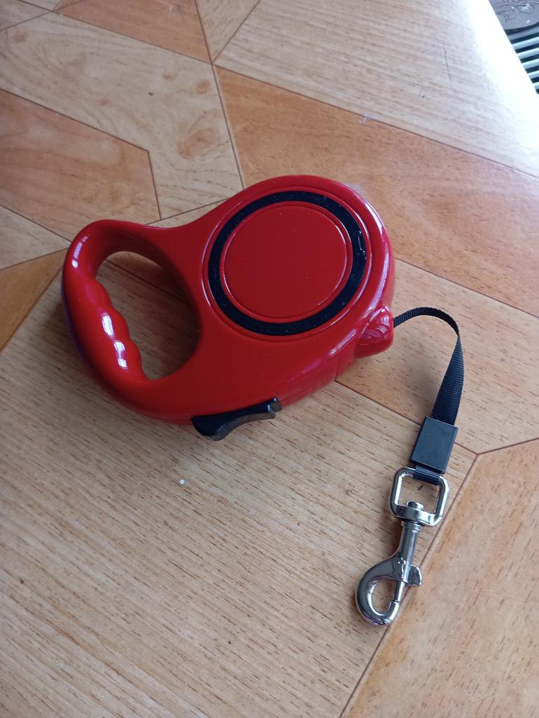 Excellent leash with handle. The carabiner is normal. Very good for our Pekingese. 5 meters. Thank you.
