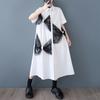 DIMANAF 2025 Spring Summer Shirt Dress Plus Size Women Casual Vintage Long Dress Loose Basic Black White Dress