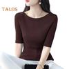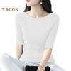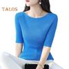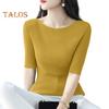 Women Tops Slim Fit Solid Color Ribbed T-Shirt Round Neck Half Sleeve Elastic Pullover Tops Daily Wear