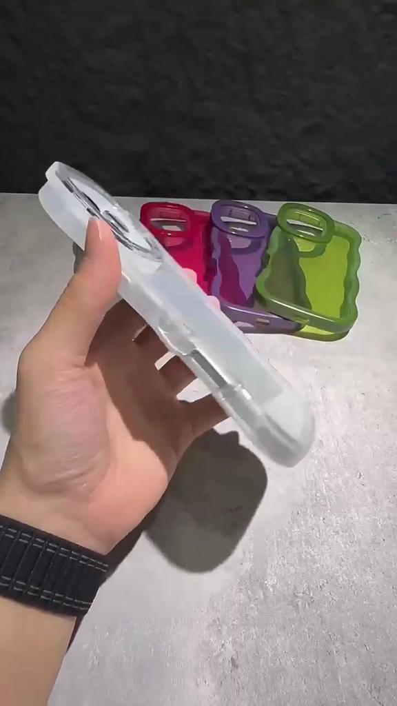 2IN1 Folding Stand Wave Clear Phone Case For iPhone 16 15 11 12 13 14 Pro Max X XR Fashion 3D Curly Shockproof Protective Cover