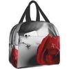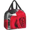 Red Rose Flowers On Gray Lunch Box Travel Bag Reusable Insulated Cooler Lunch Bags Girls Men Funny Picnic Tote Bag