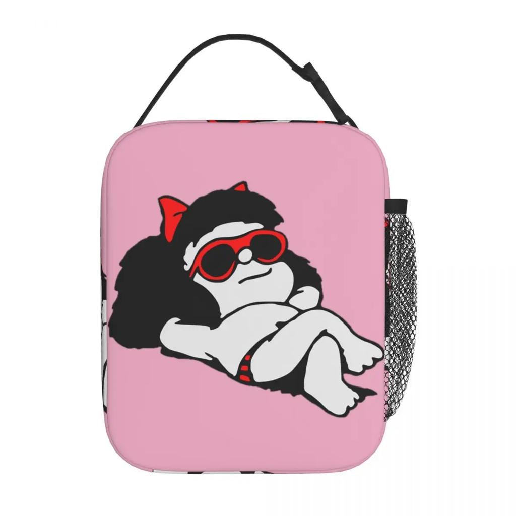 Mafalda Wearing Sunglasses Thermal Insulated Lunch Bag for Picnic Kawaii Portable Bento Box Men Women Thermal Cooler Lunch Boxes