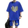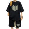 Enhance your style with this trendy Men's Outfit. This loose sports suit features a short-sleeved top paired with cropped shorts, offering a classic and stylish look.