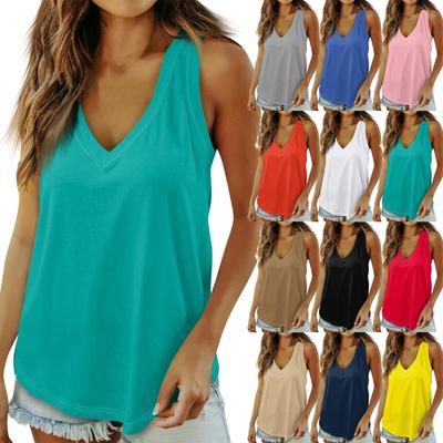Women's Vest Summer V-neck T-shirt Fashionable Sleeveless Basic Loose Casual Top
