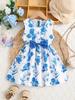 Girls' Fashionable Puffed-sleeve Floral Dress 2025 Summer Children's Casual Vacation Vest Dress