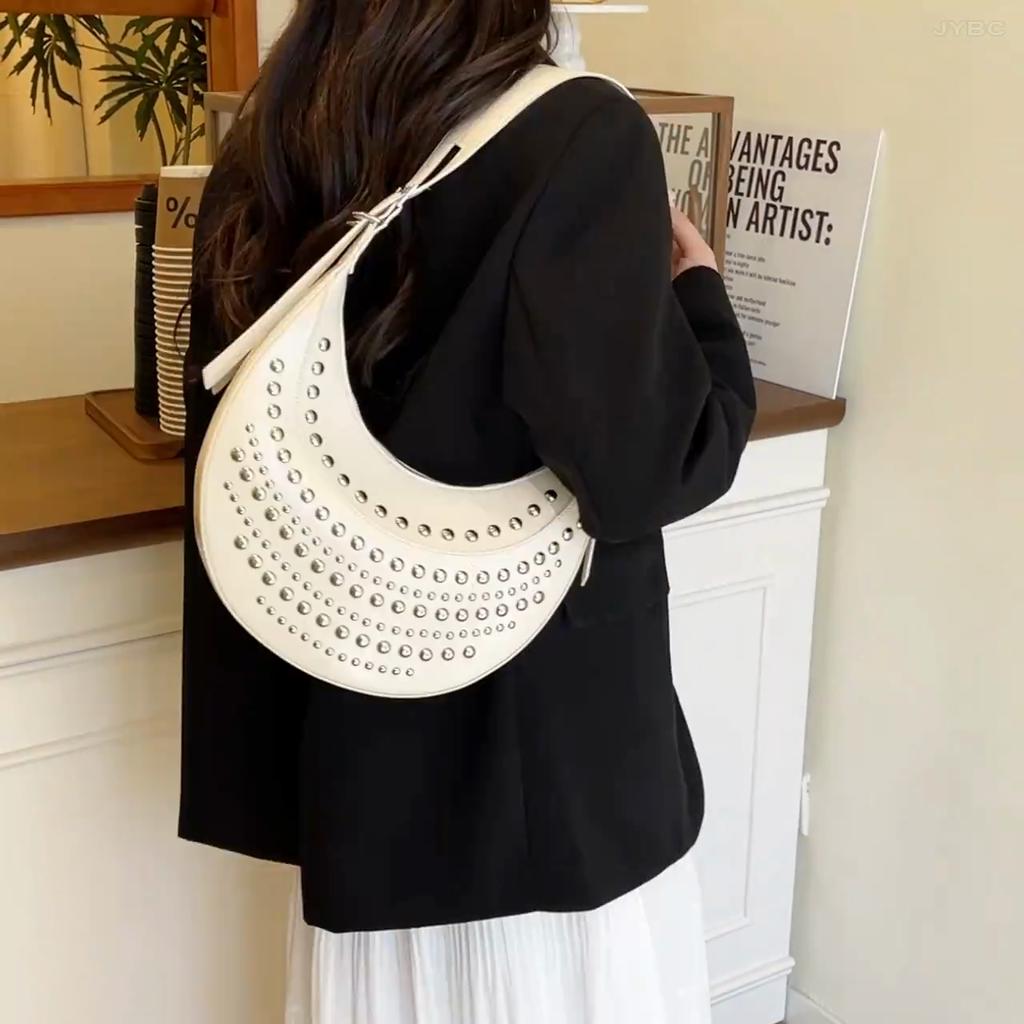 Designer Studded Shoulder Bag Rivet Crescent Bags 2025 Summer New Women Metal Underarm Bag Retro Rivet Polka Dot Shoulder Bags