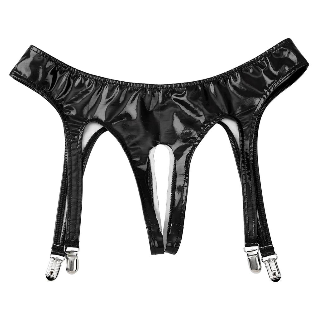 Womens Patent Leather Briefs Glossy Finish Garter Clips Open Crotch Design Club Lingerie