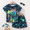 2 Pcs Girl's Glow-in-the-dark Effect Cat Pattern Short T-Shirts & Shorts Pajama Set,