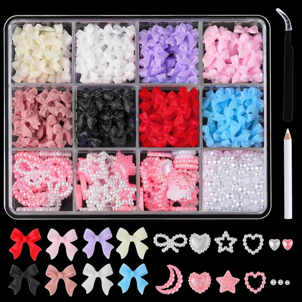 12-Grid Streamer Bow Tie Christmas White Red Resin Bow Nail Jewelry Mixed Set Diy