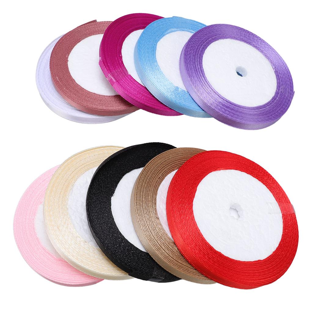 10Pcs 0.6cm Gift Wrapping Ribbon Polyester Multicolors Exquisite Decorative Ribbons Roll for Birthda