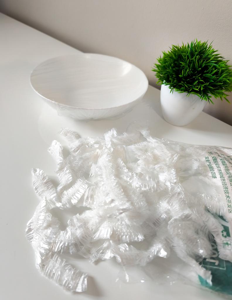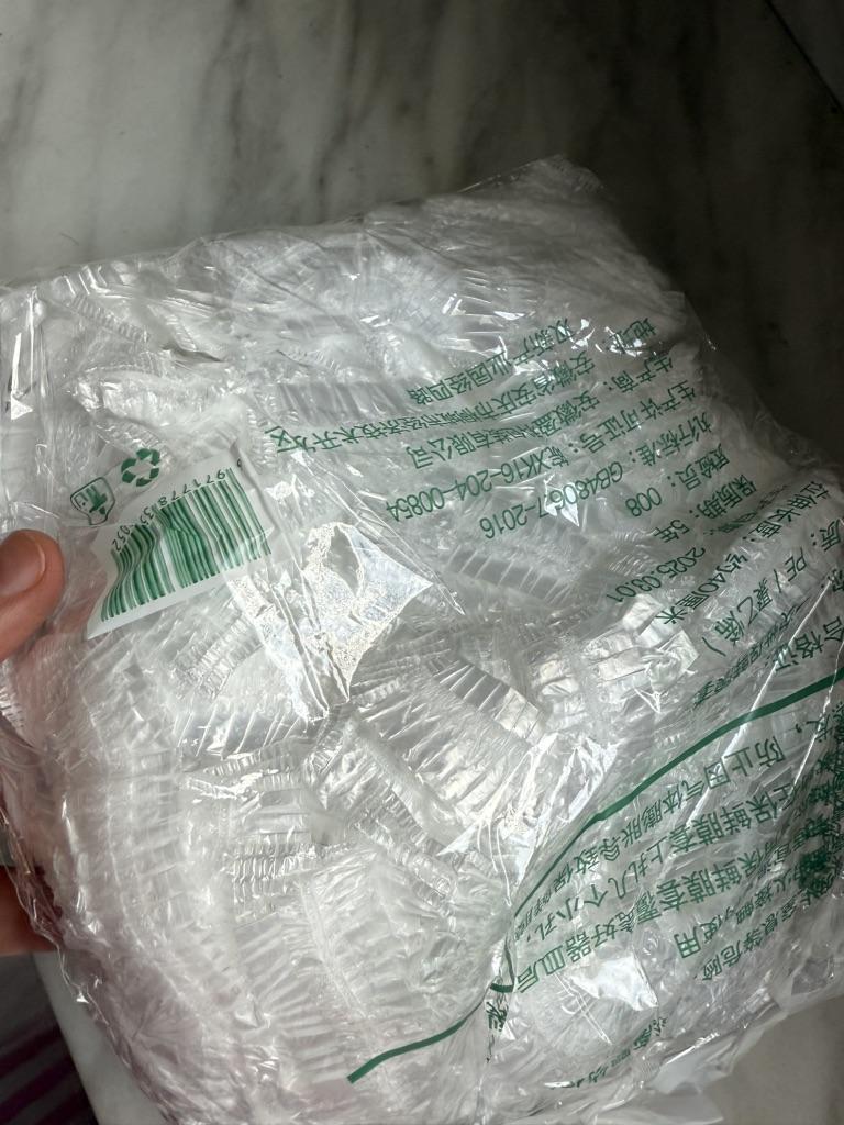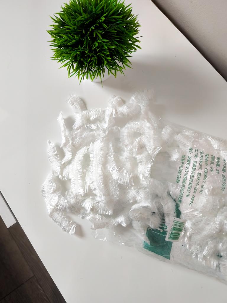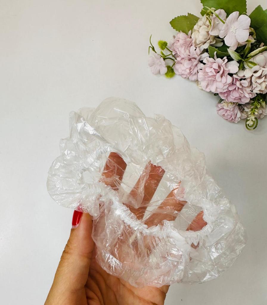 Packaging of transparent disposable polyethylene caps/covers. Their main purpose is to ensure hygiene and protection. They are widely used: * For shower or hair protection (classic use). * In beauty salons and hairdressers. * In the kitchen or in catering for hygiene. * Sometimes as food covers or shoe covers. This is a convenient, compact, and versatile hygienic accessory.