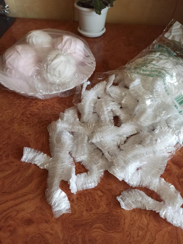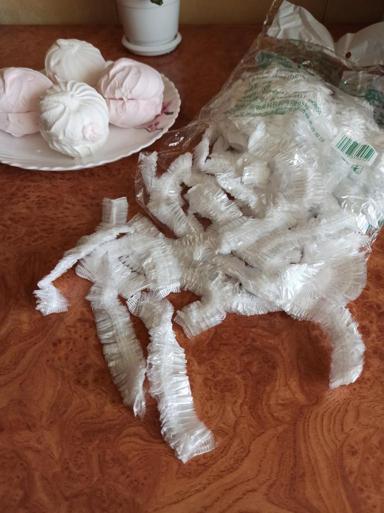 A set of 100 polyethylene bags - covers will become an indispensable helper in the kitchen. The rubber band tightly secures the bag to the surface and reliably preserves the freshness of food on the table, in the refrigerator, outdoors, protects against insects, animals, moisture, and dust.. Universal bags are suitable both for kitchen utensils and can be used as a shower cap, culinary or medical cap, or as shoe covers.