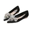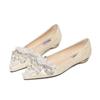 New Crown Pearl Soft Flats Wedding Shoes Pointed Toe Women Dress Moccasins Low Pearl Heel Ladies Fashion Luxury Plus Size 43