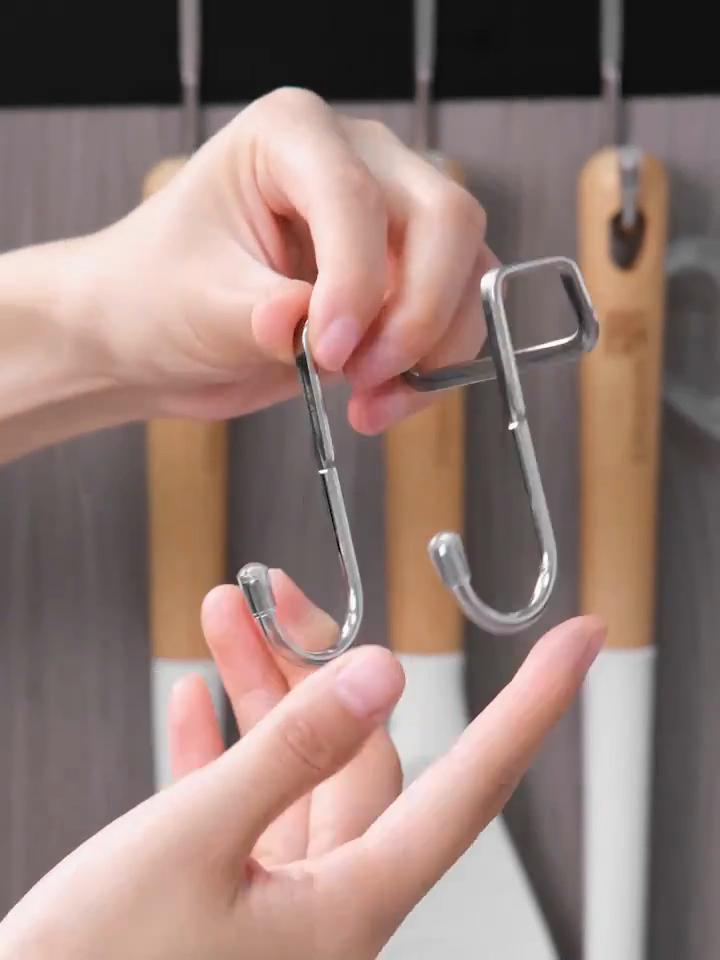 Stainless Steel S-Shaped Double Hook 1pc - Punch-Free Wall Mount Cabinet Door Hanger - Easy Install Traceless Hanging Clothes Hook for Kitchen