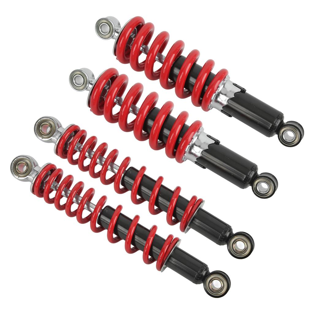 1 x Pair of Front Spring Shock Absorber1 x Pair of Rear Spring Shock AbsorberUniversal Replacement: Fit for Chinese brands 50cc?125cc Dirt Pit Bike ATV Go Kart, such as for TaoTao, for Buyang, for Coolsport, for Lifan, for Tank, for SUNL, for Redcat, for Eagle, etc.