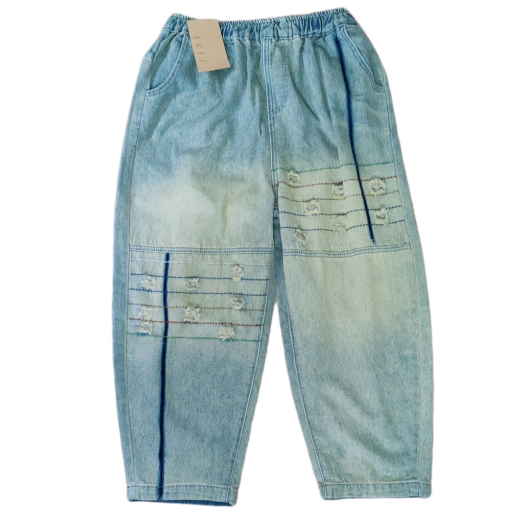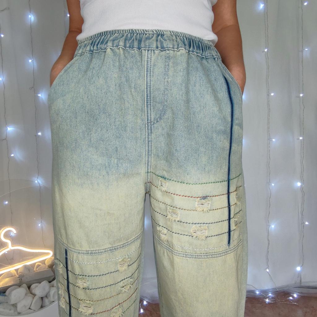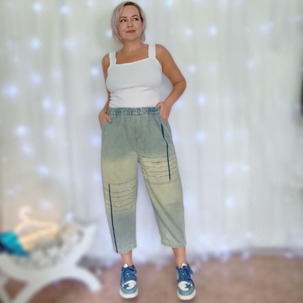 Korean Fashion Plus Size Spring Summer Women Basic Jeans High Waist Striped Ripped Casual Loose Denim Capris Vintage Washed Cotton Thin Jeans