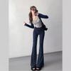 Smiling High Waist Printed Elastic Flare Pants for Women In Spring New Slim Fit and Casual Flare Pants