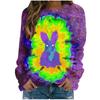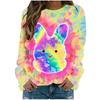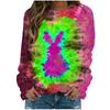 Round Neck 3D Tie Dye Rabbit Printed Top Fashionable Casual Long Sleeved Women's T-shirts