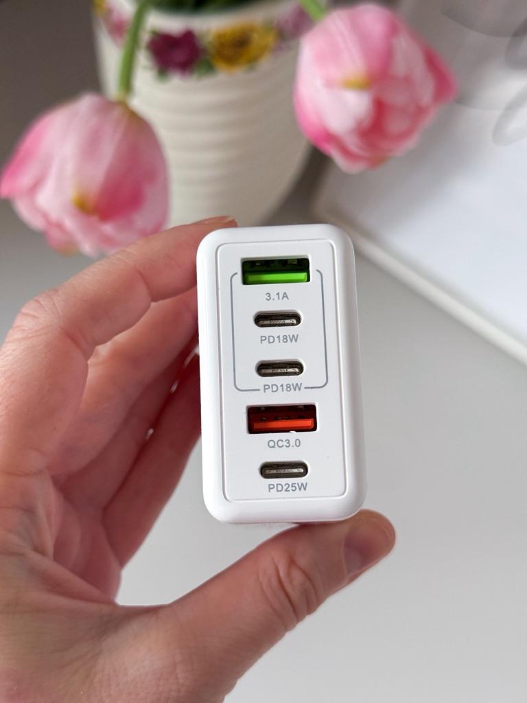 🌺Charger. 🌺Suitable for many types of modern gadgets. 🌺Works great, charges well. 🌺The unit has 5 connectors. 🌺The product is of high quality, I recommend it.