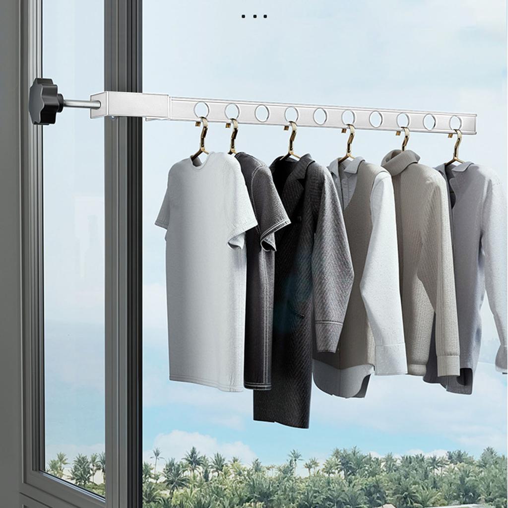 No-Punch Aluminum Drying Rack, Wall Mounted Space Saving Clothes Rod with 10 Holes,Non-Slip Coat Holder for Balcony Bedroom