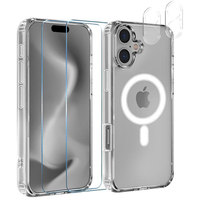 Case for iPhone 16 and 2 Tempered Glass Screen and 2 Camera Protectors - Integrated Magnetic Circle Phonillico®